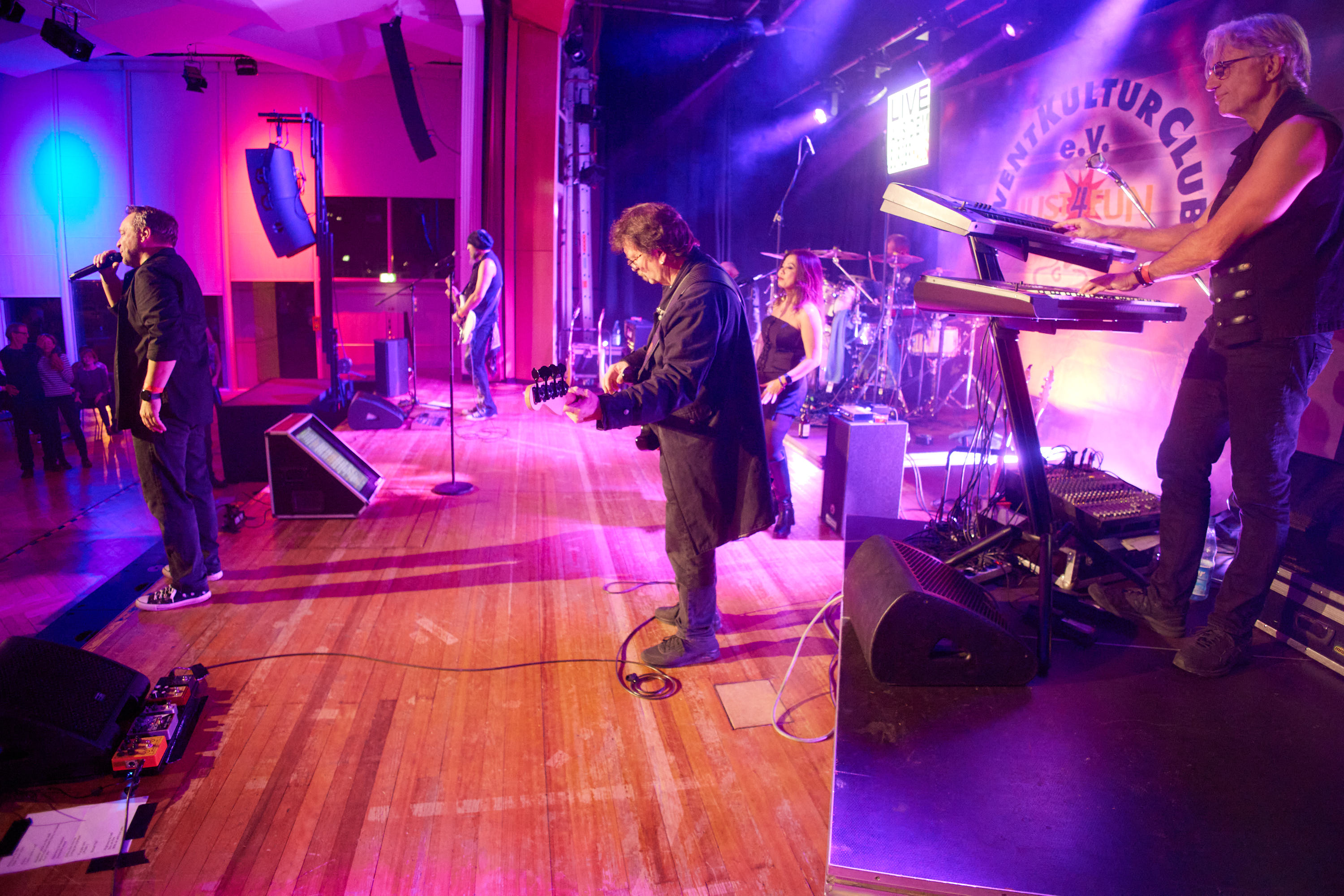 Michael Fischers Just4Fun als Kultur-Lokomotive Obertshausens hatte erneut zur traditionellen EventKulturClub-Herbstparty in den großen Saal des Bürgerhauses an der Tempelhofer Straße eingeladen. Nach dem Opener Love Ashbury bot die Band Rockwood eine musikalische Zeitreise zu den Meilensteinen der Rockgeschichte und sorgte für Gänsehaut pur.