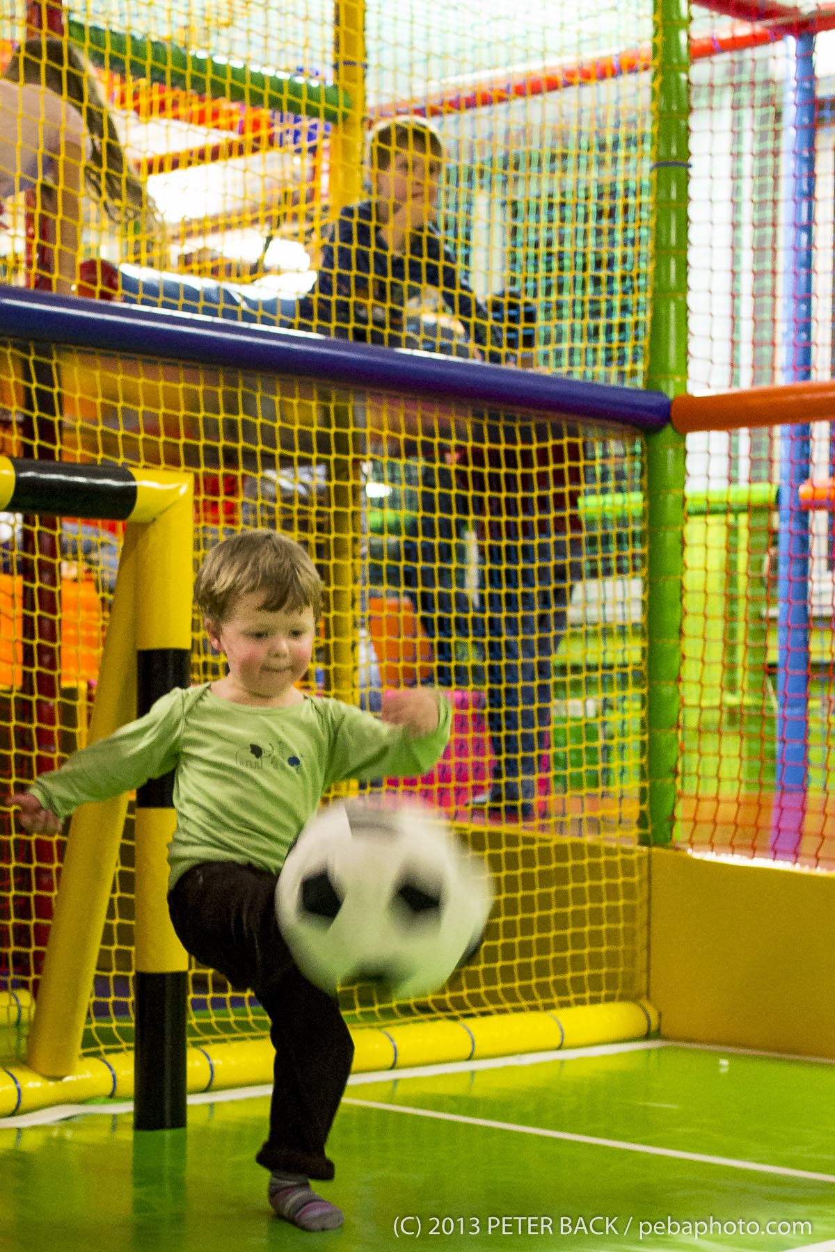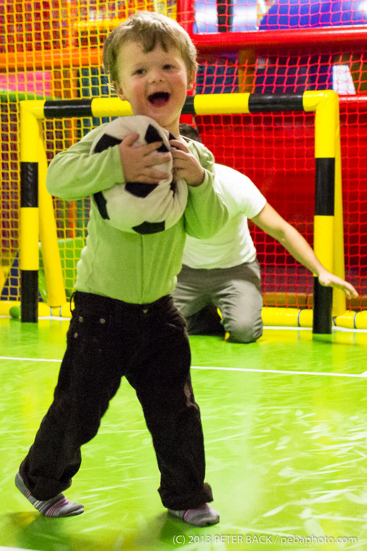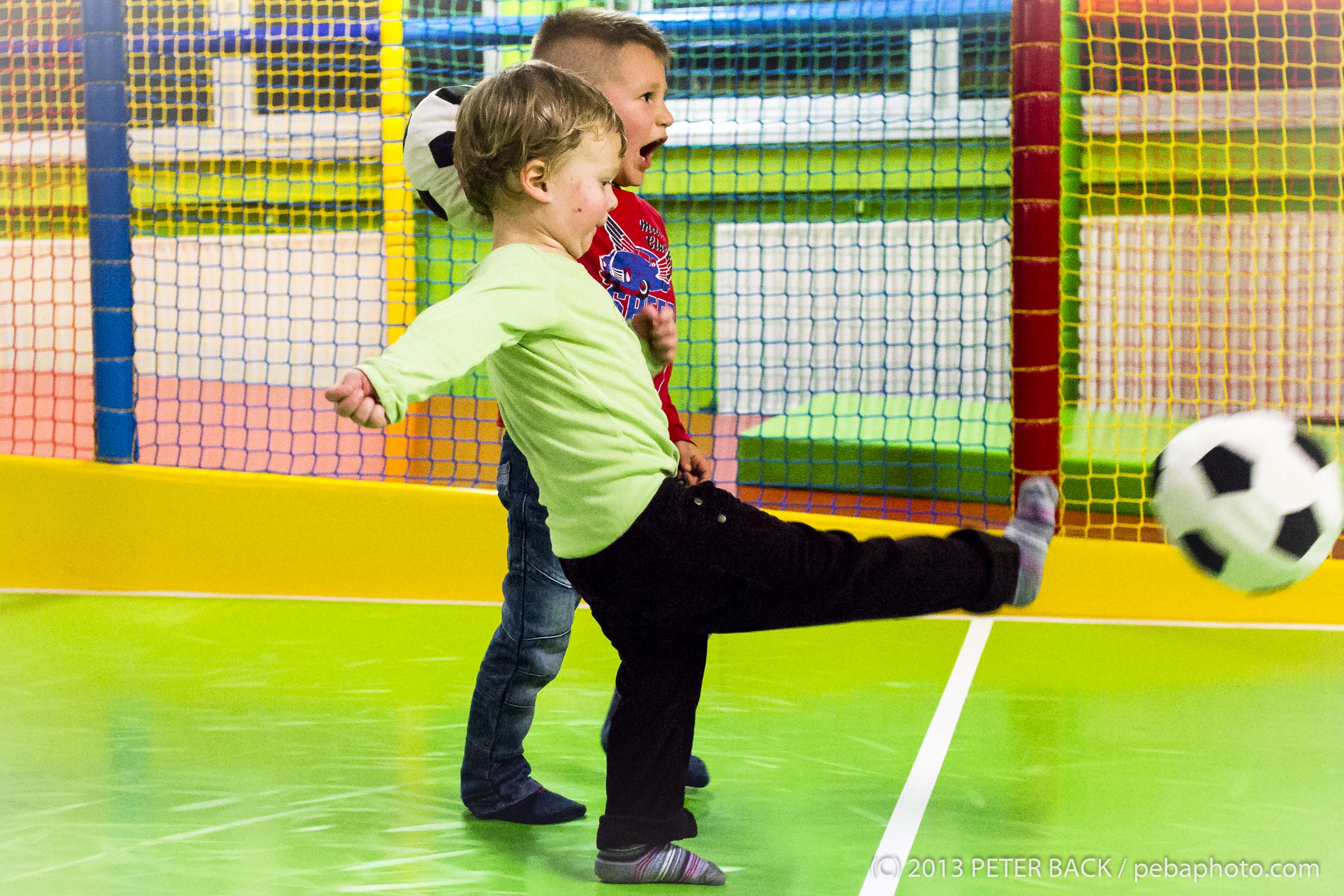 in vorbildlicher Weise von Mark und Etem. Irgendwie scheint es eine Art Seelenverwandtschaft zwischen Johannes und Meris zu geben, denn kein anderes Kind (Mark und Etem, hört einfach weg) begrüßt Johannes so überschwänglich wie Meris. Sieht er ihn am Ende des Kindergartengangs, läuft er ihm mit Maximalgeschwindigkeit entgegen; spielt Meris auf der Empore, muss Johannes unbedingt hinterher. Umgekehrt scheint es nach Aussage der Erzieherinnen ähnlich zu sein. Nahelingend und trotzdem überraschend war für Johannes die Einladung zu Meris viertem Geburtstag im Indoorspielplatz Kinderwelt Regenbogen an der Daimlerstraße. Hier stand unser liebstes Hobby, Fußballspielen, ganz vorne auf der Beliebtheitsskala. Dass Beide die Sache heiter und zugleich ernst nahmen ist ersichtlich. Johannes, Mama und Papa wünschen Dir, lieber Meris und Deiner Familie, immer die besten Freunde und alles erdenklich Gute in Deiner neuen Heimat.